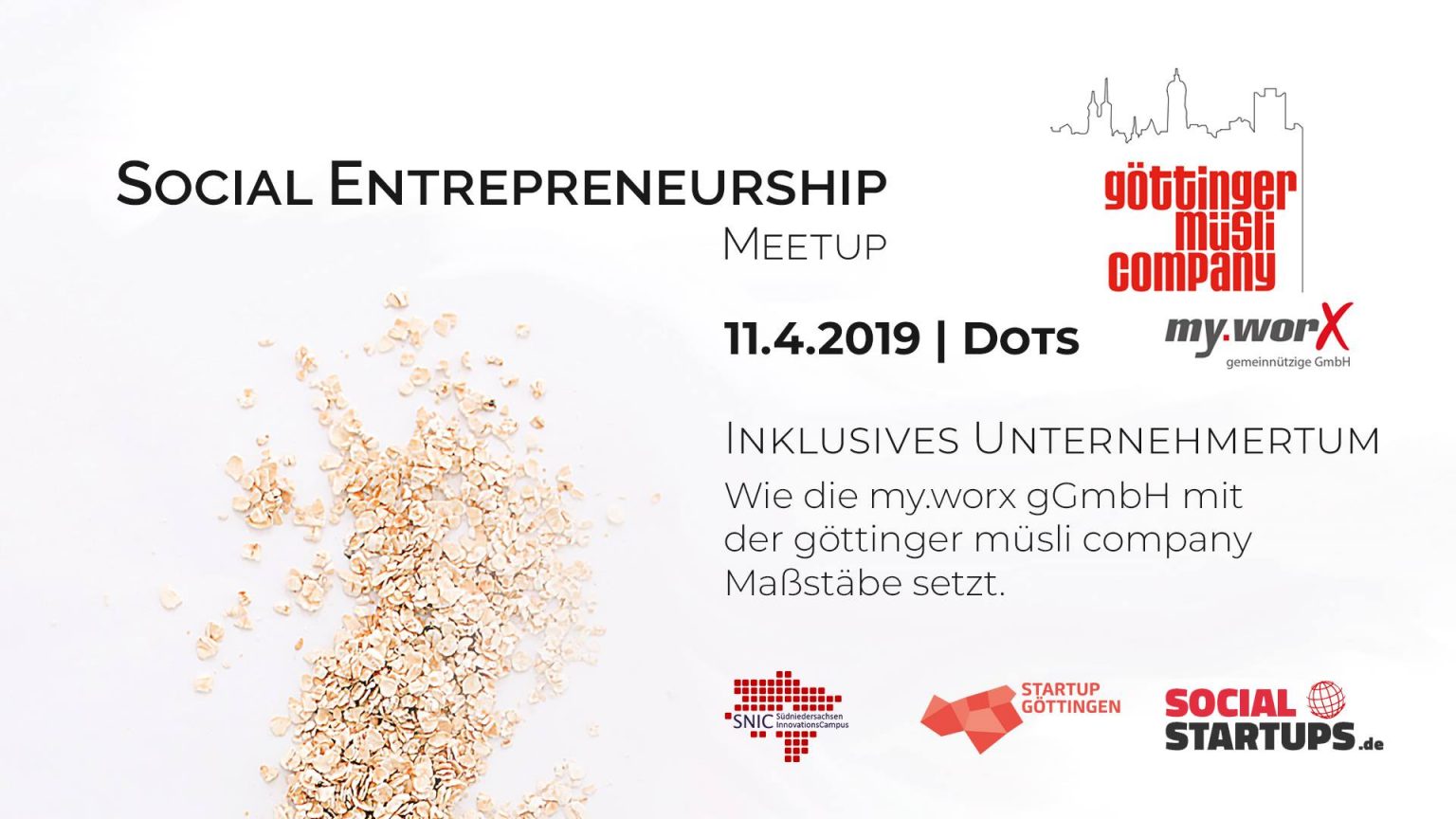 Wie die göttinger müsli company moderne Arbeitsplätze für chronisch kranke Menschen mit gesunden Müslikreationen verbindet, erfahren Interessierte beim 4. Social Entrepreneurship Meetup. Nach dem Kurzvortrag besteht wie immer die Möglichkeit, sich auszutauschen und über soziales und nachhaltiges Unternehmertum zu diskutieren.