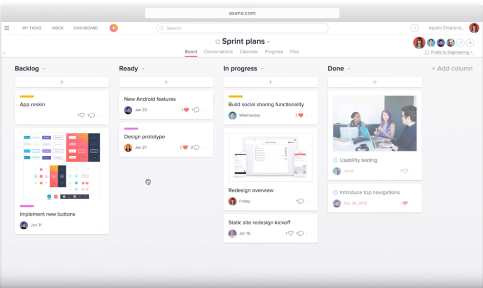 Wie factro ist auch Asana cloudbasiert und ermöglicht somit seinen Nutzern eine flexiblere und dynamischere Arbeitsweise. Das Tool wurde vor allem für die Vereinfachung von Organisation und Teamwork entwickelt. Anpassbar organisiert sich Asana in den Listen „Backlog“, „Ready“, „In progress“ und „Done“. Der Workflow ist durch einzelne Karten dargestellt. In einem Workspace können Projekte organisiert und Aufgaben erstellt und bearbeitet werden – von beliebig vielen Teams. Das Dashboard zeigt alles auf einen Blick, Aufgaben können hier nach Alphabet, Deadline oder Status sortiert werden. So können selbstredend auch Deadlines definiert und lokale Dateien oder Dokumente aus Dropbox, OneDrive oder Google Drive angehängt werden.