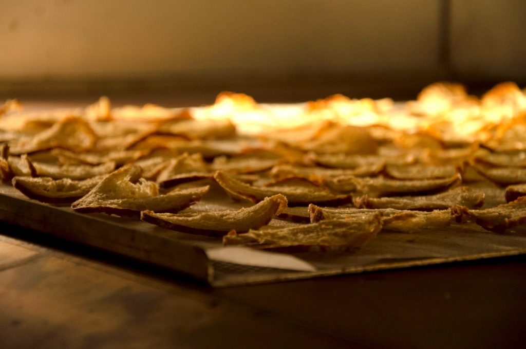 Allein in der Schweiz werden jährlich zwei Millionen Tonnen einwandfreier Lebensmittel weggeworfen. Brot ist dabei absoluter Spitzenreiter im Abfall. Nicht mehr frisch genug, um es zu verkaufen, heißt es bereits nach nur einem Tag bei der Mehrheit der Bäckereien und Lebensmittelhändler. In Anbetracht dieser haarsträubenden Verschwendung, hat sich eine knackige Idee als effektive Gegenmaßnahme herauskristallisiert. Zu wenig frisch für die Brottheke, aber perfekt für das crunchy-Gütesiegel – so lautet das Credo von ZüriChips. Um Brot vom Vortag vor der Mülltonne zu retten, hat sich ZüriChips mit Äss-Bar verbündet. Denn während Äss-Bar bereits Backwaren verschiedener Bäckereien nach dem Prinzip «frisch von gestern» verkauft, erlebt ihr unverkauftes Brot dank ZüriChips Food-Upcyling vom Feinsten. Dazu werden die vermeintlichen Lebensmittelabfälle erst bei Äss-Bar abgeholt, in fein säuberlich dünne Scheiben geschnitten, mit aromatischen Kräutern und hochwertigem Olivenöl beträufelt und im Backofen goldbraun gebacken. Tadaaaa!! Dem eigentlich zu Tode verurteilten Brot wird ein neues Leben geschenkt: In Form köstlicher, nachhaltiger Chips.